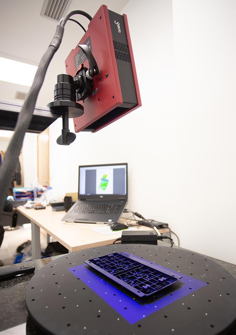 Escaneo 3D de componentes. Contamos con dos equipos para escanear distintos tamaños de piezas, cuyo volumen de medición es de 200mmx150mm y 80mmx60mm, y precisión de ±0,01mm y ±0,005mm respectivamente.